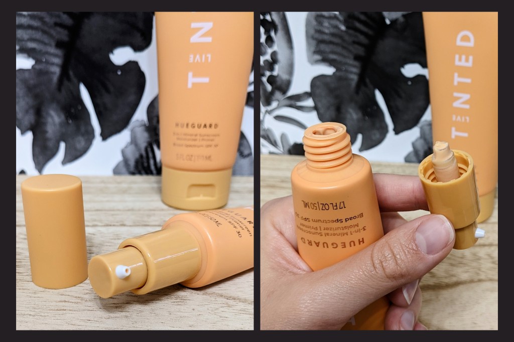 I have had zero white cast, zero greasies, and absolutely no pilling while using Hueguard. In fact, I love it so much that I’ve almost finished my smaller 1.7 oz bottle, and I purchased the jumbo 5 oz. bottle! Additionally, if you have the smaller bottle with the pump, the top unscrews and you can refill it using the 5 oz. bottle. Personally, I love the pump because it makes it very easy to control how much you’re using and it’s excellent for travel.