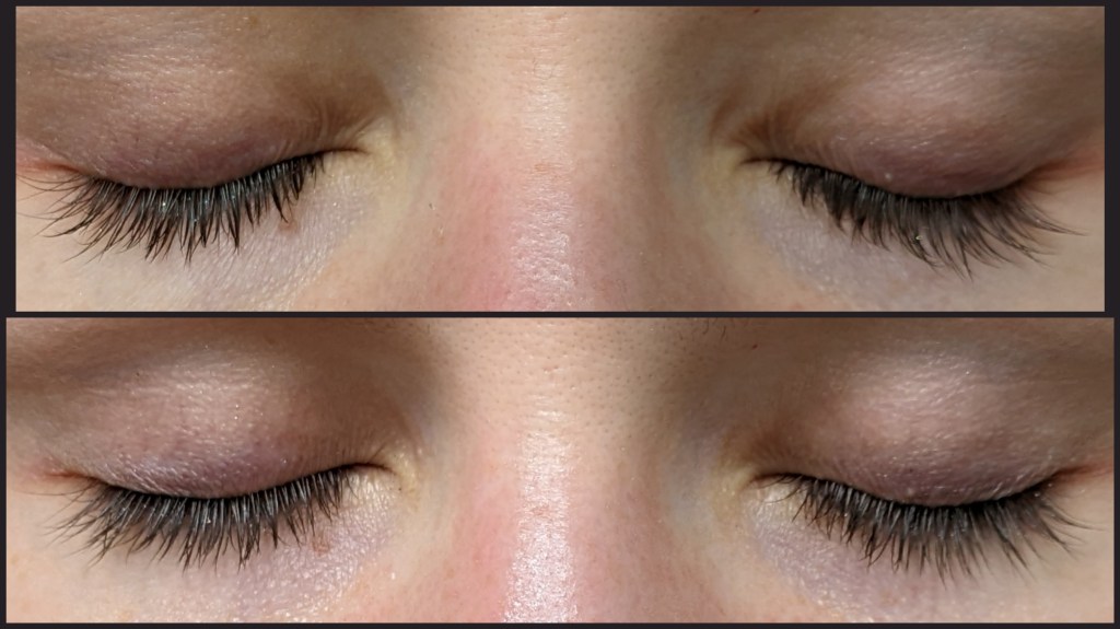 Bottom photo: after one month using Lids, Love & Lash Enhancing Serum